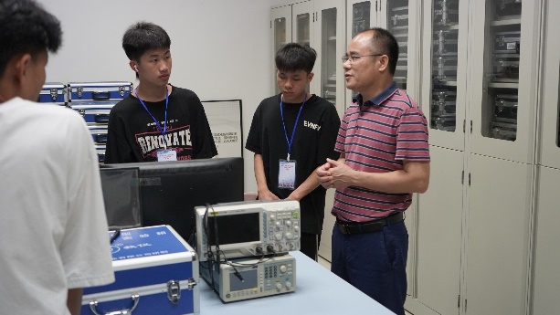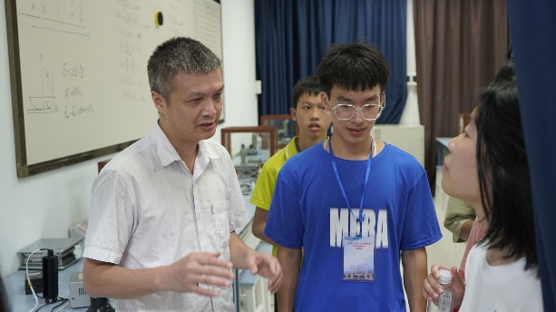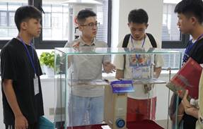 7月11日,那坡中学研学团的同学们先后参观了综合赛事平台的洁净实验室、光学实验室等,面对从未见过的实验仪器,他们秉承求知之心,向实验室负责老师提出了自己的疑问,而老师们也都耐心地向他们讲解实验原理与仪器使用方法。