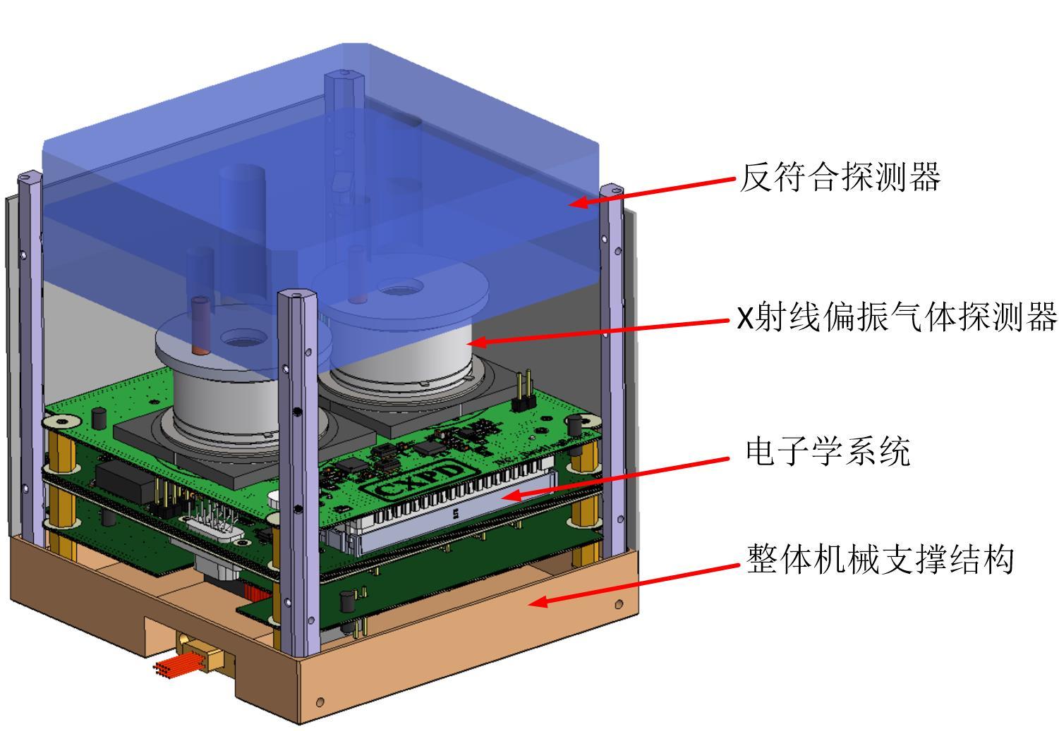 X射线偏振CXPD立方星采用小型GMCP偏振探测器原理样机,将对空间较亮的X射线天体源进行观测,给出偏振度及偏振方向的信息,开展天体源的结构、辐射机制等研究;对空间的带电粒子和X射线本底进行测量,研究本底的成分和流强等信息;用来验证在空间中开展X射线偏振测量的相关技术。X射线偏振CXPD立方星有效载荷包括了反符合探测器、X射线偏振气体探测器、电子学系统和机械结构。此项工程历时多年,CXPD合作组科研团队经过多次设计、实验、模拟、测试,终于在近期成功交付,将基于国内商用立方星平台,开展空间飞行验证。