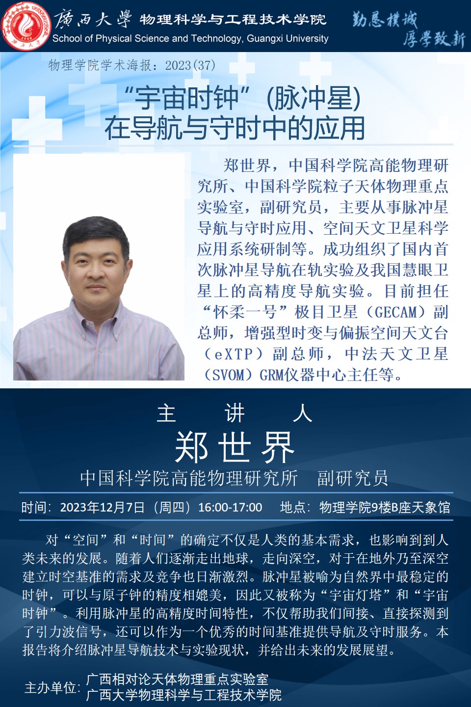 下一篇:2023年学术报告系列之36:脉冲星-自然界最准确的时钟