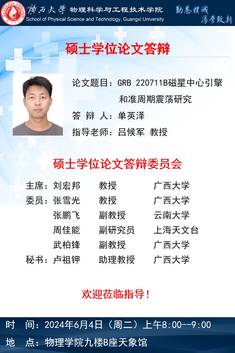 下一篇:吕宜霏、郭学康、石登旺硕士学位论文答辩
