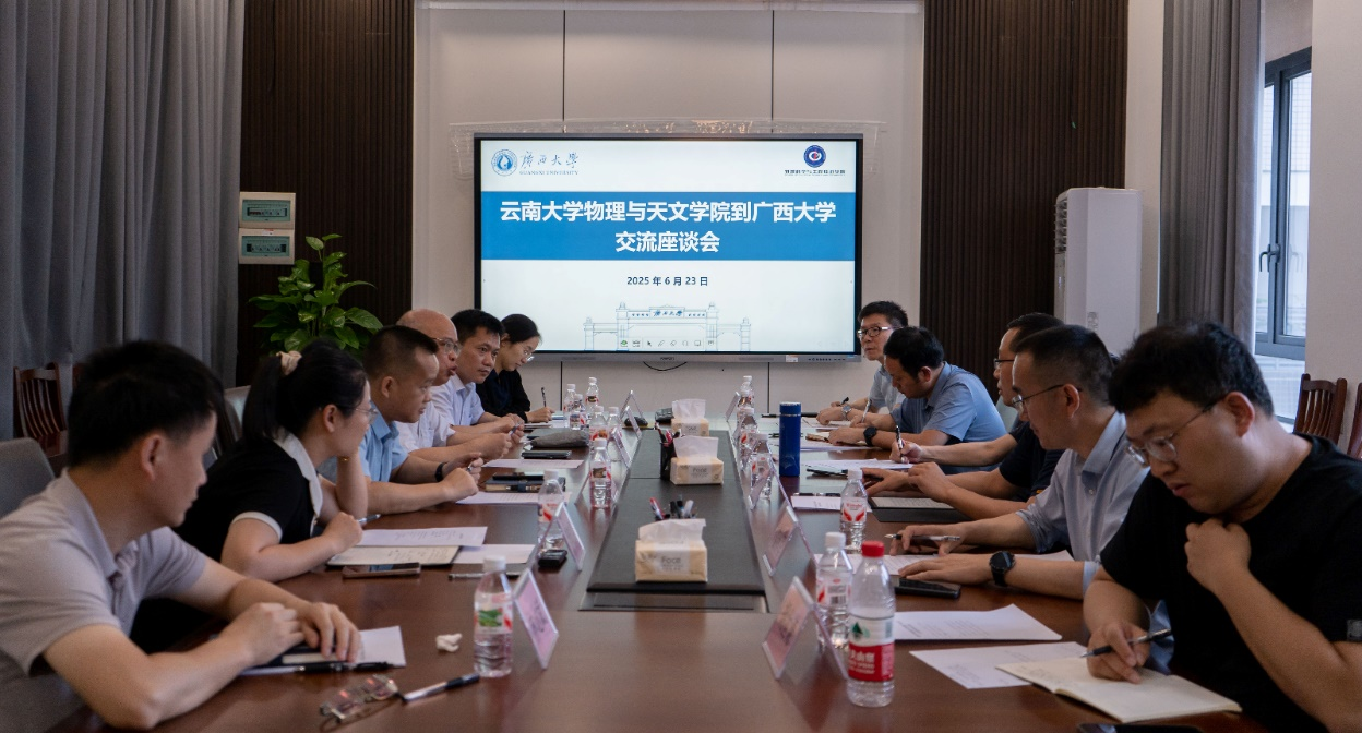 广西大学物理学院副院长刘宏邦,云南大学原副校长、物理与天文学院院长张力先后介绍了广西大学物理学院、云南大学物理与天文学院的相关情况。之后,双方就二层教学机构的党建工作、师资队伍建设、行政队伍建设、教育教学管理、学生培养、学生管理工作等各方面进行了深入交流。
