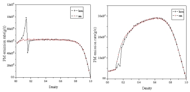 本研究结合经验颗粒物排放模型,研究了周期边界条件和开放边界条件下具有延缓启动效应的两种典型元胞自动机交通模型(VDR和TT模型)的颗粒物(PM2.5)排放。在周期性边界条件下,VDR模型在亚稳态处交通流排放颗粒物最多,减速状态交通流排放颗粒物最多。对于TT模型,排放最多的是处于交通拥堵和减速状态的车辆。在开放边界条件下,得到了反映交通拥堵的相图和流量图。研究表明,出口概率和入口概率对颗粒物排放有较大影响。在相同的出口概率下,颗粒物排放的趋势随着车辆运动状态的不同而变化。对于不同的出口概率,在相同的运动状态下,交通排放的最大颗粒浓度不同。该项研究成果与实际观测交通污染。