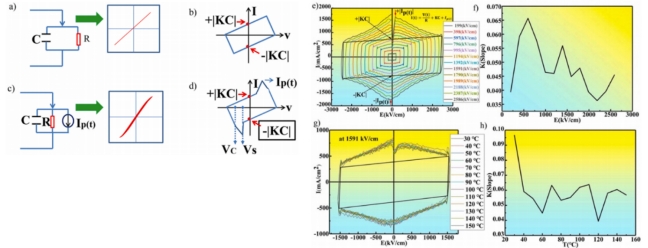 以往的研究大多是通过P-E loop来分析铁电材料的储能性能。本文结合P-E loop、I-E曲线和拉曼光谱拟合,分析了铁电材料的储能性能,提出了一种等效电路模型(将铁电材料的I-E曲线视为等效电容(C)的等效电路),等效电阻(R)和极化电荷(Ip(t))并联,即I(t)=(V(t)/R+KC+Ip(t))。揭示了铁电材料介电损耗低、温度不敏感的原因。结果表明,斜率的稳定性(K)与铁电材料储能性能的稳定性呈正相关,为评价铁电材料的储能性能提供了新的依据。