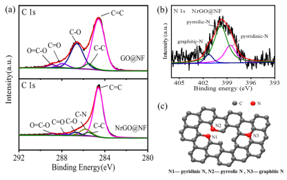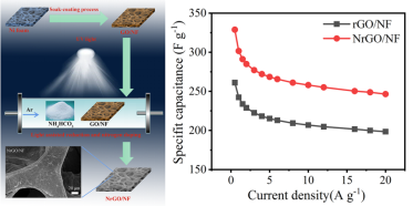 该工作提出光辅助碳酸氢铵热解并诱导快速还原氧化石墨烯和氮掺杂的一种简单而环保的策略,探讨了氧化石墨烯光还原机理和氮掺杂机理。与无氮掺杂的石墨烯相比,氮掺杂的石墨烯表现出优异的超级电容性能,其比电容高达328.85 F/g, 10000次循环后电容保持率为96.1%。该成果为快速制备高性能石墨烯电极材料提供参考,推动了氮掺杂石墨烯在超级电容器领域的应用。