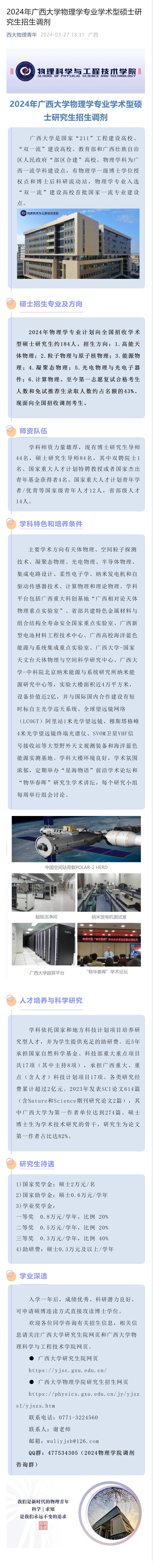 2024年广西大学物理学专业学术型硕士研究生招生调剂